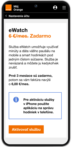 V časti eWatch kliknite na tlačidlo Aktivovať službu. Po prečítaní podmienok pokračujte výberom možnosti Objednať s povinnosťou platby.