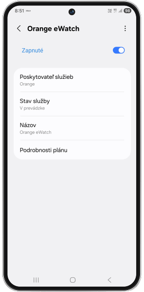 Deaktiváciu vykonáte v Zákazníckej zóne (sekcia eWatch) alebo cez aplikáciu Galaxy Wearable v telefóne (sekcia Mobilné plány). Zmena sa prejaví do pár minút.
