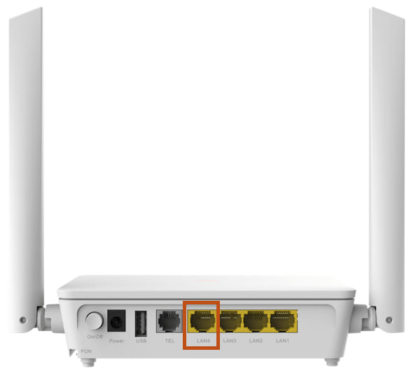 2. Druhý koniec ethernetového LAN kábla zapojíme do žltého LAN portu LAN4 v routri od Orange