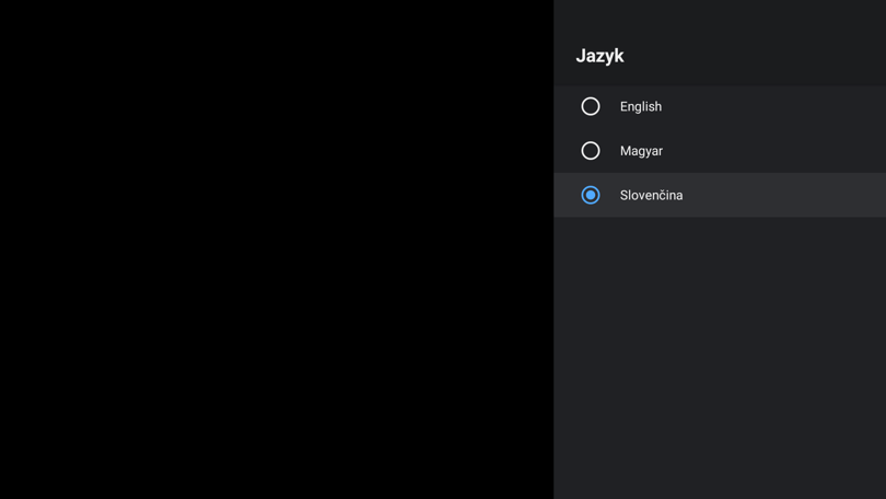 Nastavenia - Nastavenia - Predvoľby zariadenia - Jazyk: Slovenčina, Magyar, English.